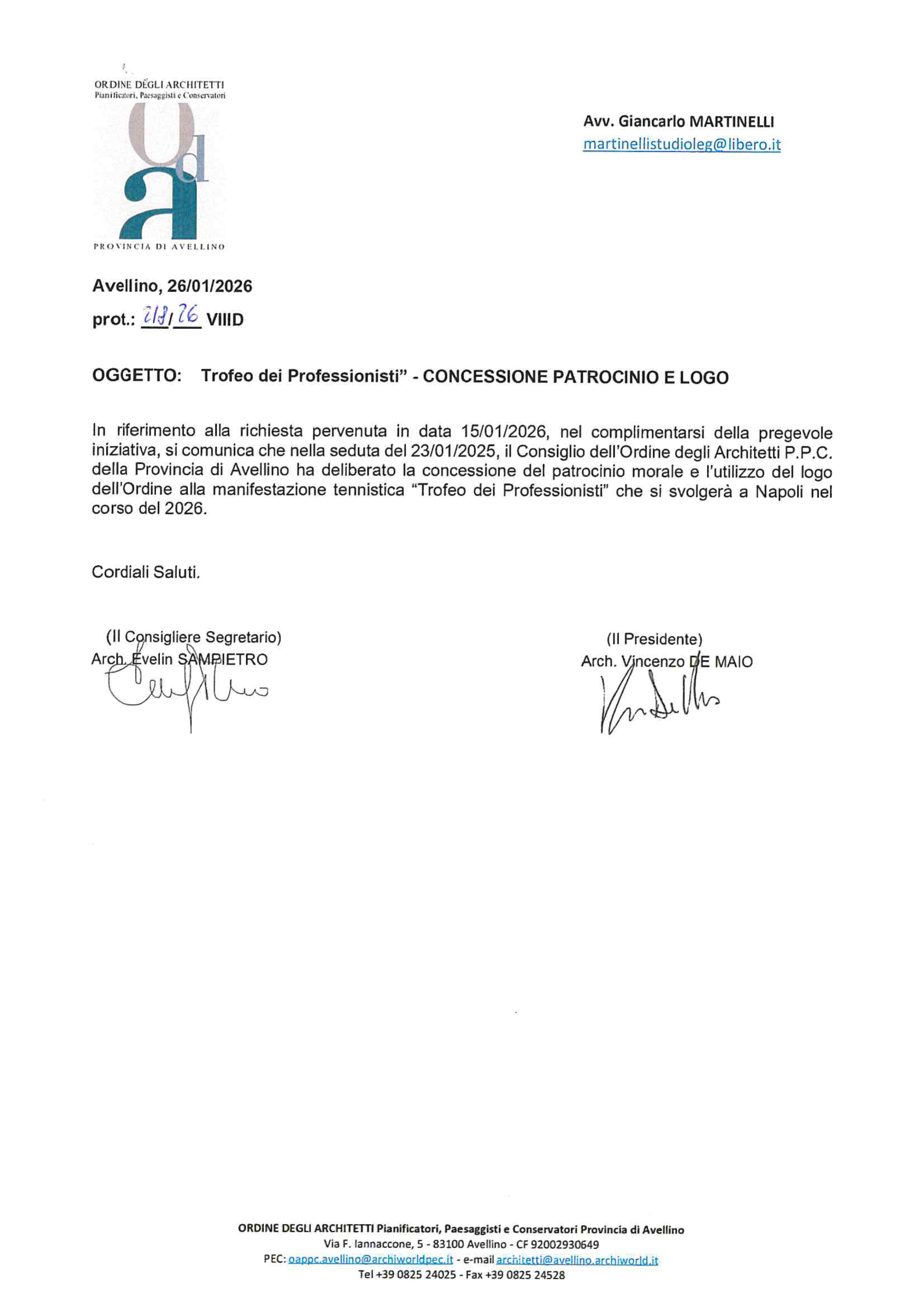 ORDINE DEGLI ARCHITETTI P. P. e C. DELLA PROVINCIA DI AVELLINO ---